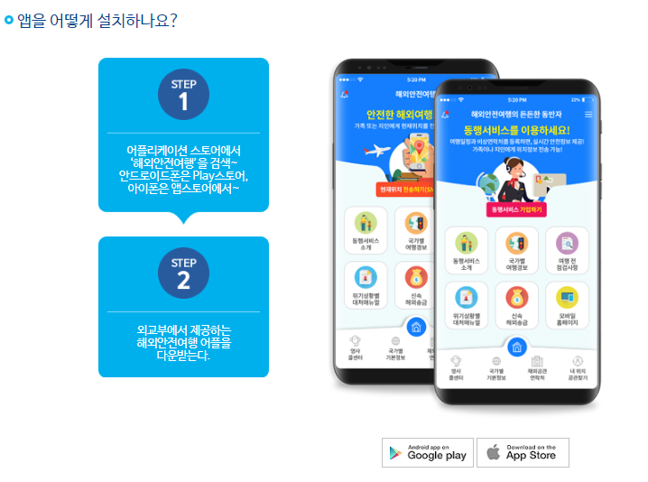 내 손안에 작은 영사관! 스마트폰 앱 검색창에 “해외안전여행”을 검색하세요!