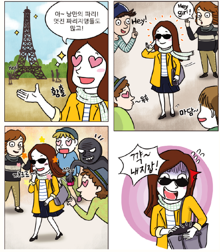뒷주머니에는 절대로 지갑을 넣지 마시고 바지 앞주머니나 코트 안주머니에 넣는 것이 안전합니다.