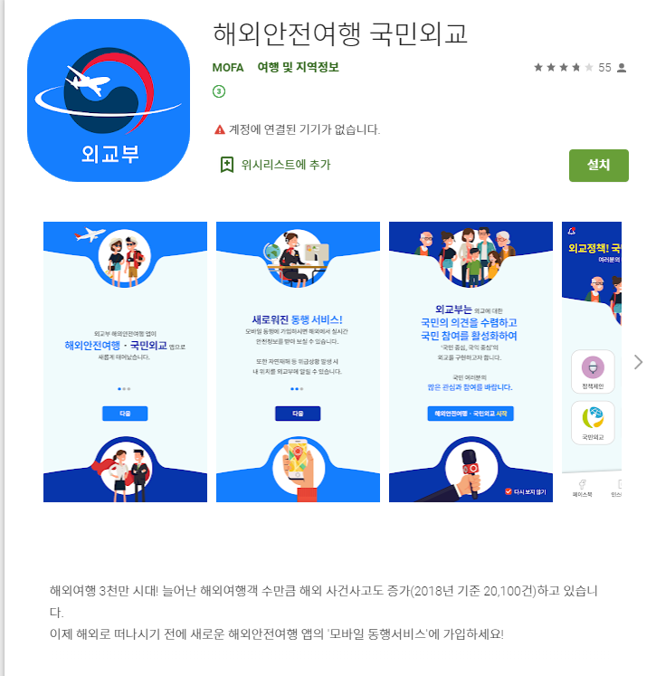 해외여행시 안전을 위해 외교부 해외안전여행 어플리케이션을 다운받아 놓으시면 좋겠죠 ㅎㅎ