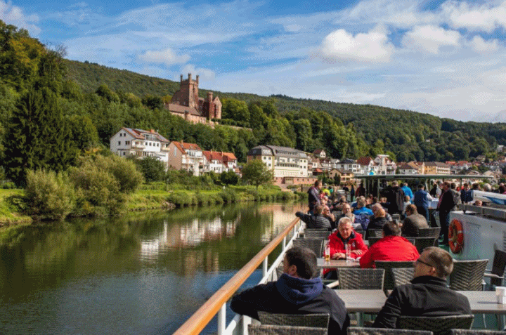 독일 하이델베르크여행에서 네카슈타이나흐까지 강보트 투어를 통해 아름다운 네카어 계곡의 마법을 탐험해보세요. 성을 따라 크루즈를 즐기고 무성한 Neckartal-Odenwald 자연 공원의 제방을 지나보세요.