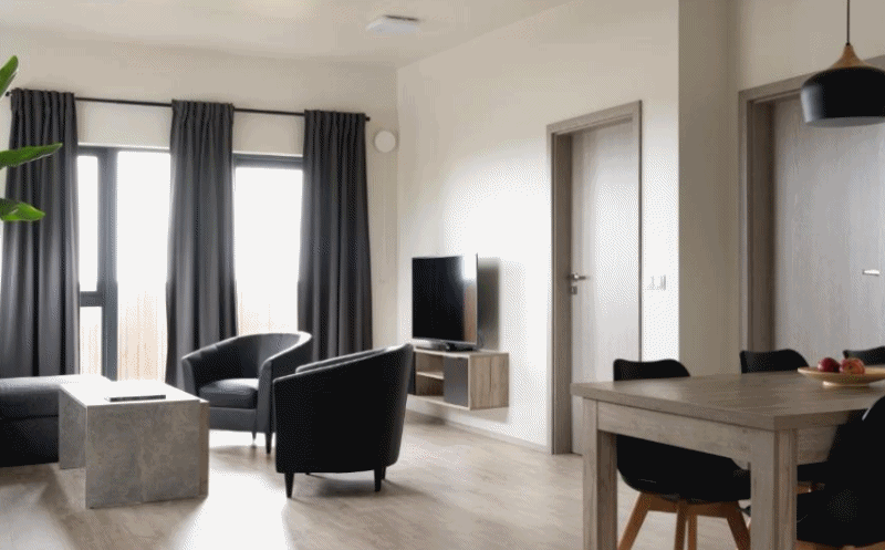 호텔에서 체크인하고 아파트로 와야합니다. 근처라서 전혀 불편함은 없었고 직원들 또한 친절했습니다. 배정 받은 객실 바로 앞에 주차하면 돼서 편하고 룸 상태는 넓고 쾌적합니다. 식기세척기와 세탁기, 건조기가 있어서 아주 편리했습니다.