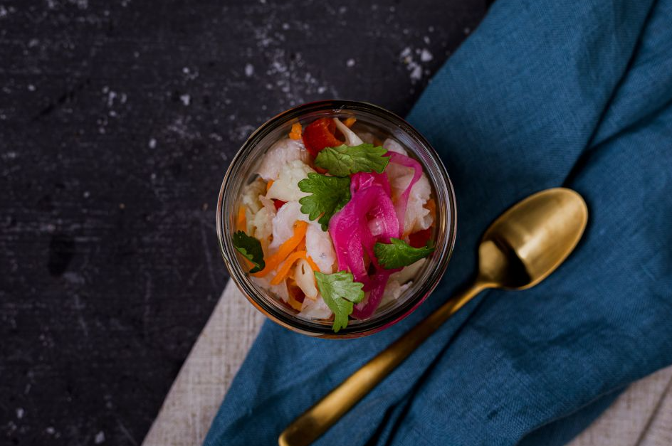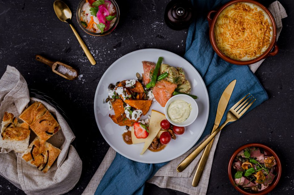신선한 현지 농산물로 만든 북극 타파스 저녁 식사