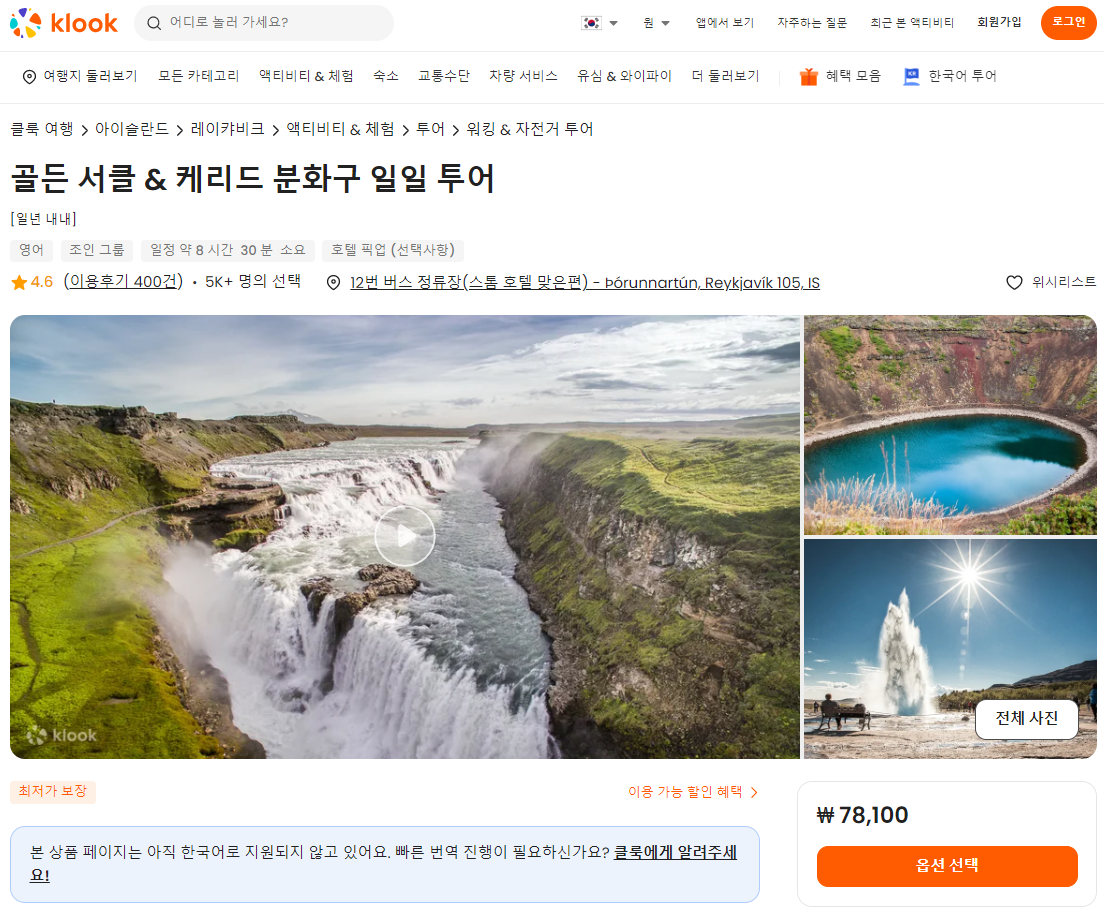 레이캬비크출발 골든 서클과 케리드 분화구 일일 투어는 클룩사이트에서 쉽게 예약하실 수 있으며, 현재 할인된 금액에 이용하실 수 있습니다.