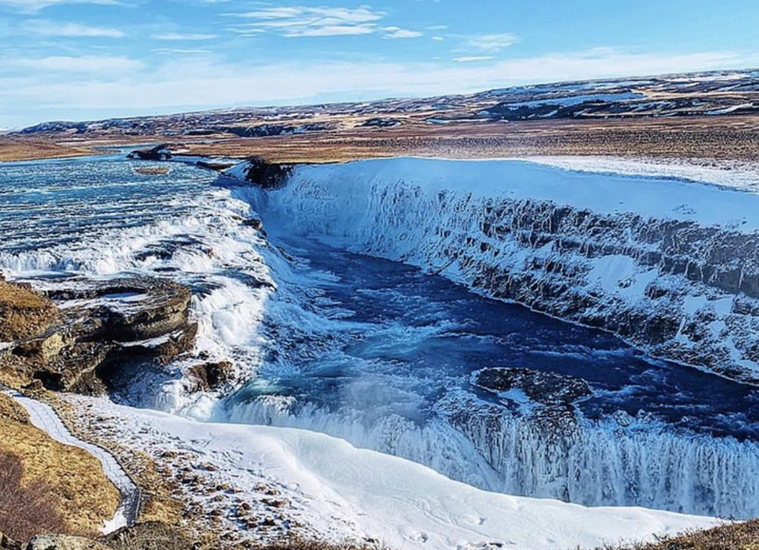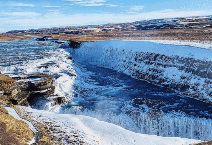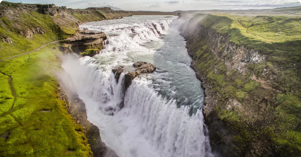 '황금 폭포'라는 뜻을 가진 굴포스는 두 단계로 떨어지는 장엄한 폭포입니다. 햇빛이 비칠 때 폭포 위에 무지개가 자주 나타나 아름다운 경관을 제공합니다.