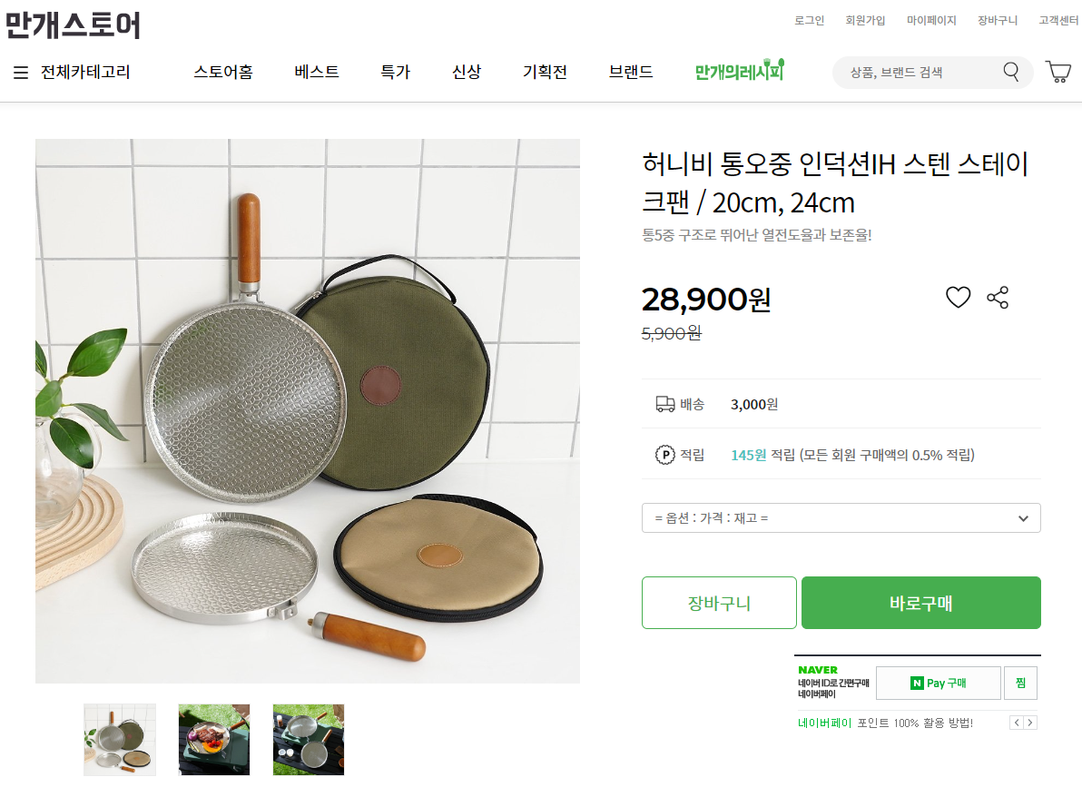 통5중 구조로 뛰어난 열전도율과 보존율을 자랑하는 허니비 통오중 인덕션IH 스텐 스테이크팬 / 20cm, 24cm는 현재 저렴한가격에 판매하고 있어 더욱 매리트 있는 제품으로 할인이벤트는 기간에 따라 조기마감할 수 있고 예고없이 가격이나 할인율이 변동될 수 있습니다. 망설이면 비싸져요~ 지금사면 저렴하게 득템할 찬스입니다.