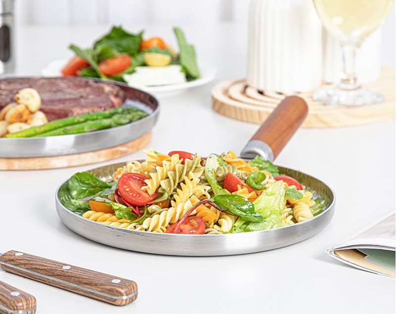파스타 빵, 반찬등을 담을수 있는 접시로도 사용할수 있는 활용도 높은 스테이크 팬으로 다양하게 활용해보세요.