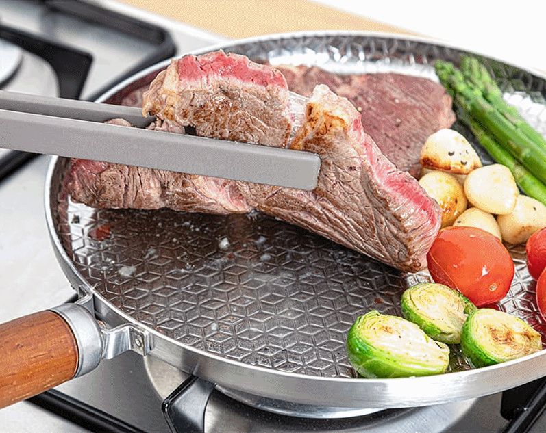 스텐 스테이크팬 / 테이블을 감각적으로 만들어주는 벌집모양 오일로드 실버스타 허니비 통5중 인덕션 IH 스테이크팬