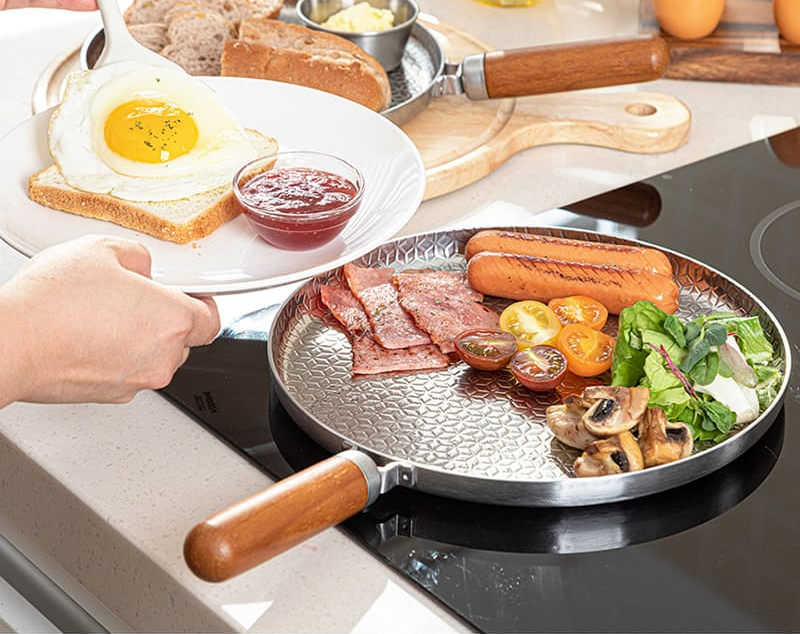 내부 표면에 벌집모양의 오일로드를 적용하여 팬 표면의 음각된 길을 따라 오일로드를 형성하여 적은 양의 기름으로 손쉽고 건강한 요리가 가능합니다.
