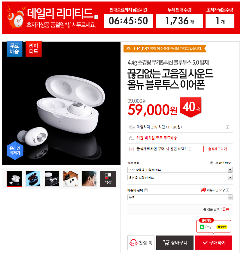 이어폰 무게 4.4g 초경량 무선이어폰으로