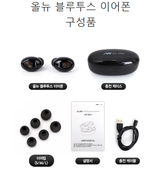 올뉴 블루투스 이어폰은 충전 케이스 34g,
