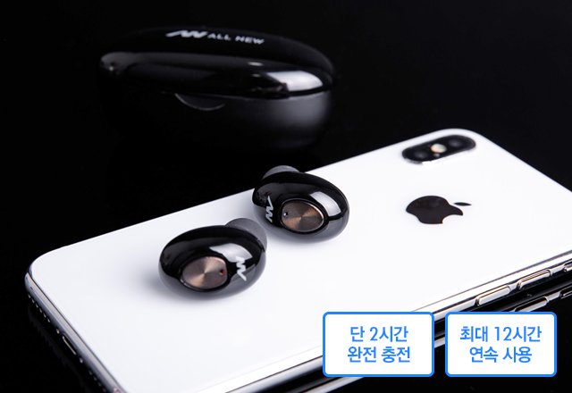 올뉴 블루투스 이어폰은 단 1시간 반 충전으로 최대 12시간 재생 가능한