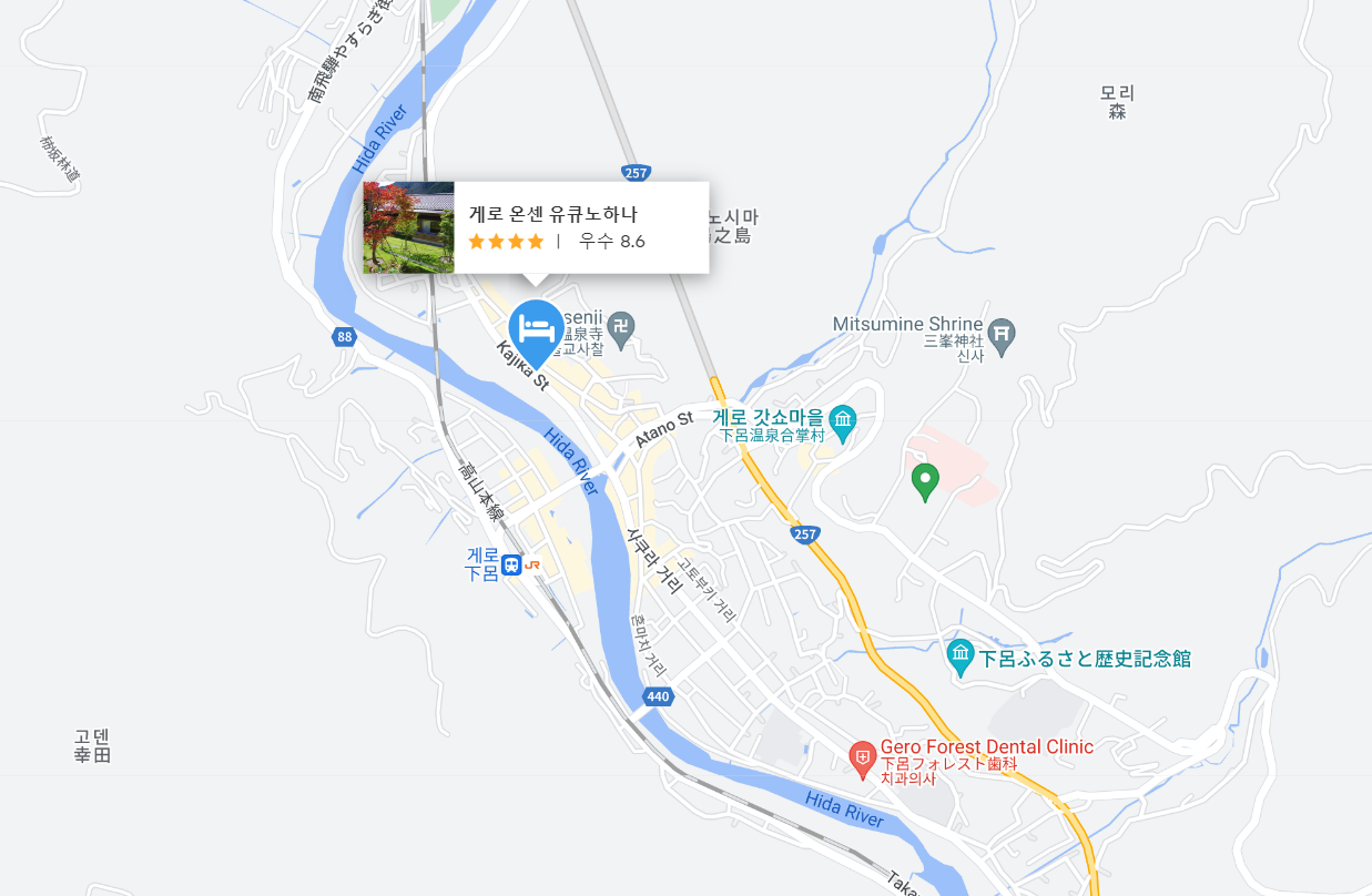 도쿄여행이나 나고야여행에 추천하는 료칸 게로 온센 유큐노하나 (Gero Onsen Yukyunohana)는 일본 기후현 게로시에 위치한 전통적인 일본식 온천 숙박 시설입니다. 게로온천은 아름다운 자연 환경과
