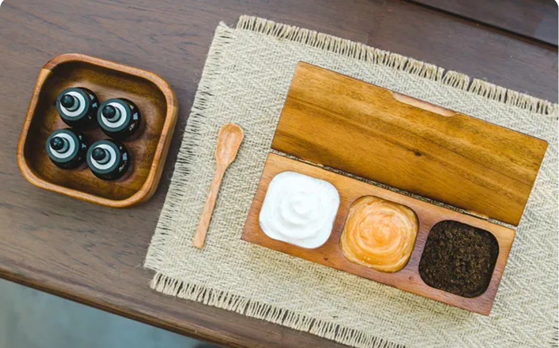 V. 모든 트리트먼트는 에너지를 공급하고 축복하는 에센셜 오일을 사용한 무료 관자놀이 마사지로 마무리됩니다. 4가지 상서로운 향유는 봉헌식의 과정을 거쳤습니다.