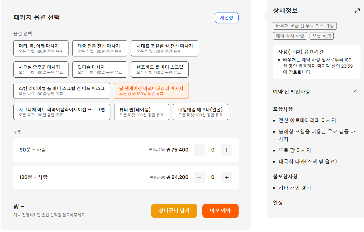스파예시) 딥 센세이션 아로마테라피 마사지 패키지