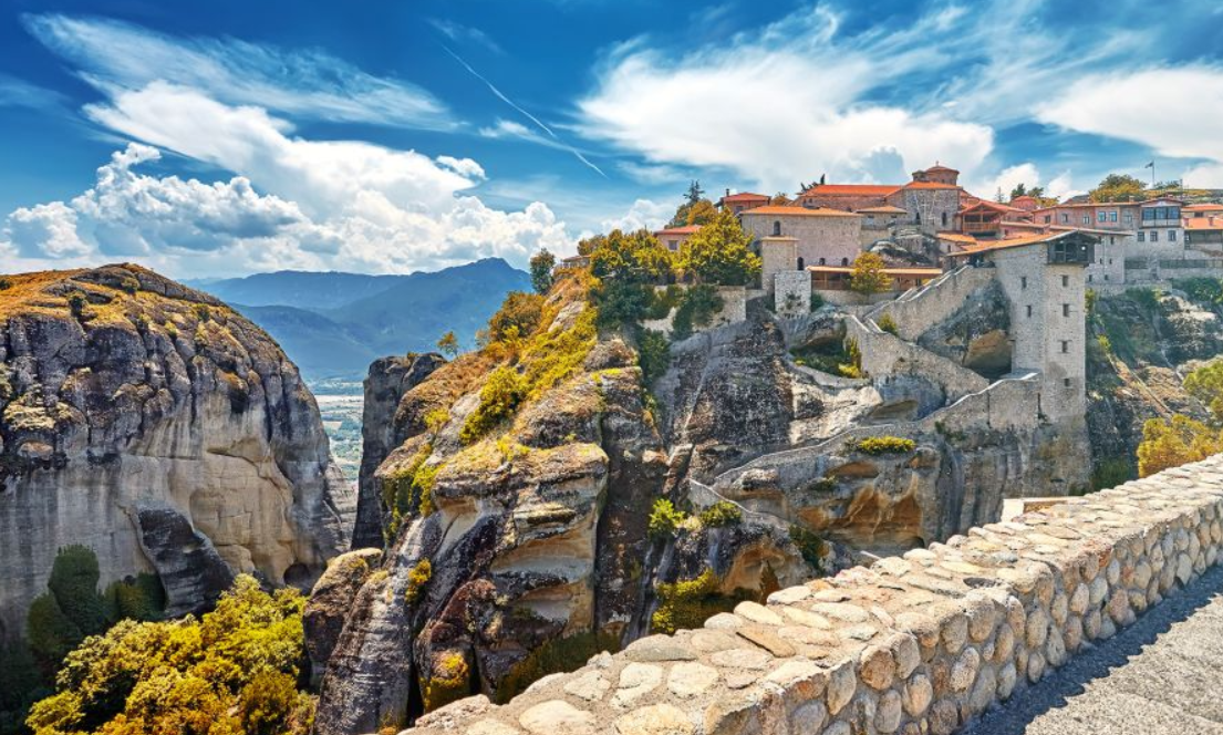 그리스 아테네여행에 가봐야하는 거대한 돌산의 하늘이 떠있는 듯한 성스러운 장소로 알려진 메테오라 수도원은 그리스 중부 테사리아 지방에 위치한 성스러운 수도원으로, 그 이름은 '하늘에