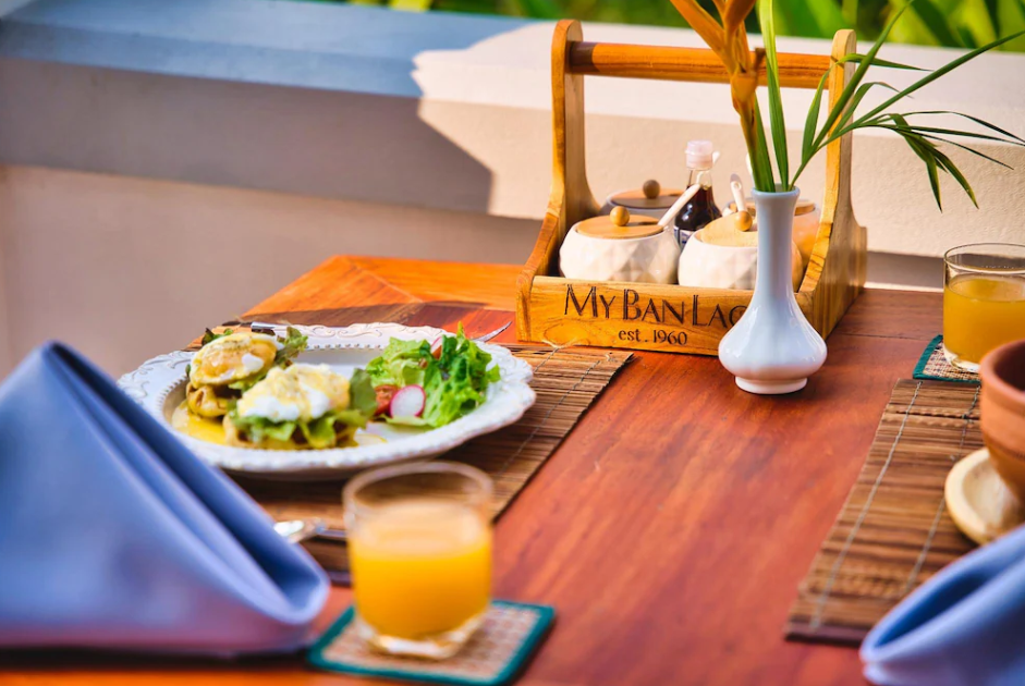 또한, 이 루앙프라방 마이 반라오 호텔(My BanLao Hotel)은 라오스 음식을 맛볼 수 있는 레스토랑과 함께, 칵테일과 와인을 즐길 수 있는 바도 운영하고 있습니다. 특히, 레스토랑에서는 라오스의 전통 요리뿐만 아니라, 서양 요리도 제공하고 있어 다양한 음식을 즐길 수 있습니다. 또한, 바에서는 다양한 종류의 칵테일과 와인을 제공하며, 특히 일몰 시간에는 아름다운 뷰를 즐기며 한잔하는 것을 추천합니다.