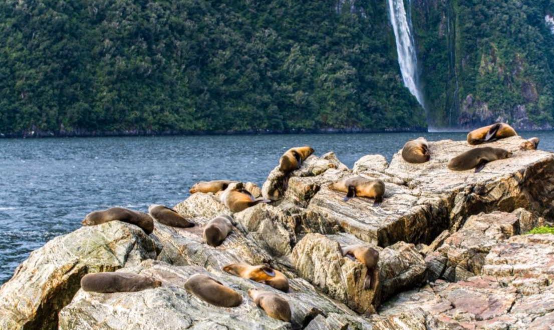 물개: 밀포드 사운드는 물개가 서식하는 지역 중 하나입니다. 특히, 크루즈 투어 중에는 물개들이 쉬고 있는 바위를 지나가므로, 그들을 가까이에서 볼 수 있습니다.