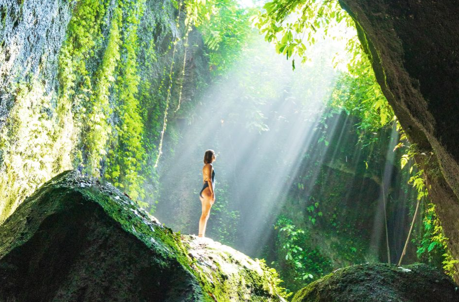 숨겨진 Tukad Cepung Waterfall은 정글을 통과하여 계단을 타고 다른 관점에서 폭포를 감상할 수 있습니다. 작은 와룽에서 점심 식사 또는 카페에서 발리의 정통 음식을 맛보십시오.