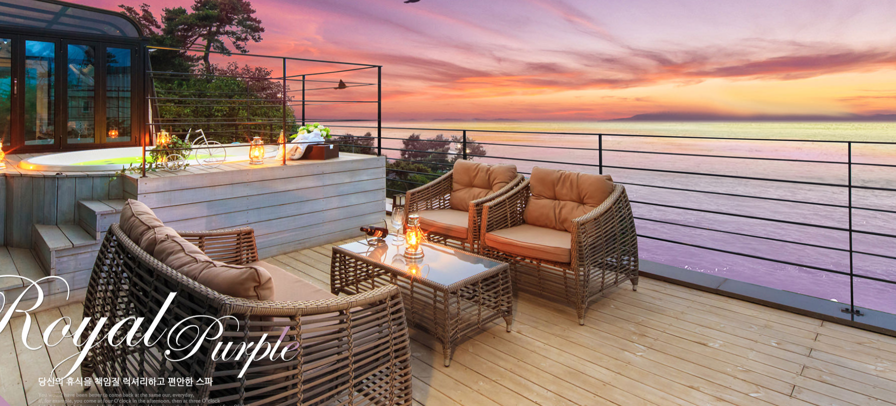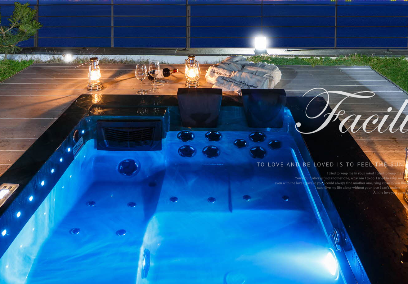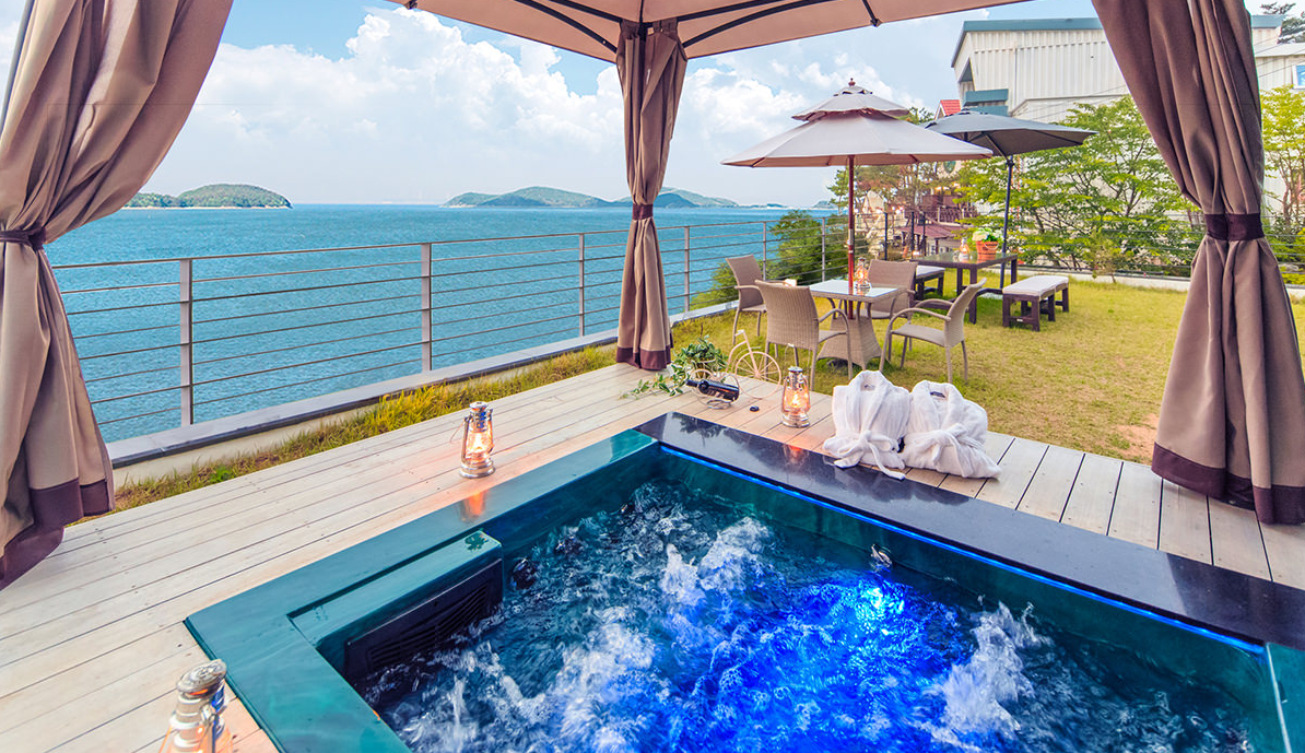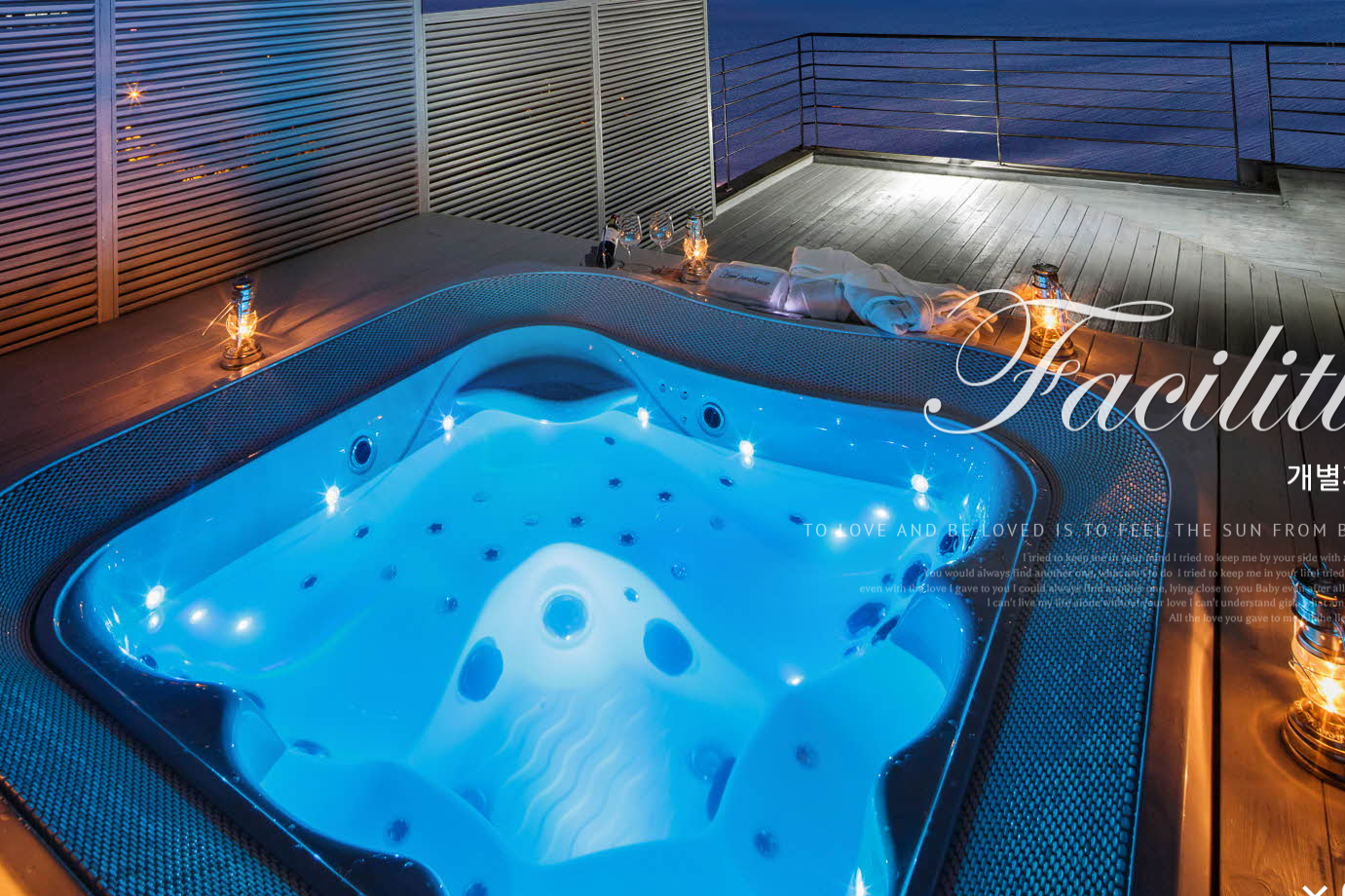 계절에 상관없이 파란바다를 바라보며 제트스파를 즐기실 수 있습니다. 연인이나 가족의 건강과 낭만을 만들어보세요.