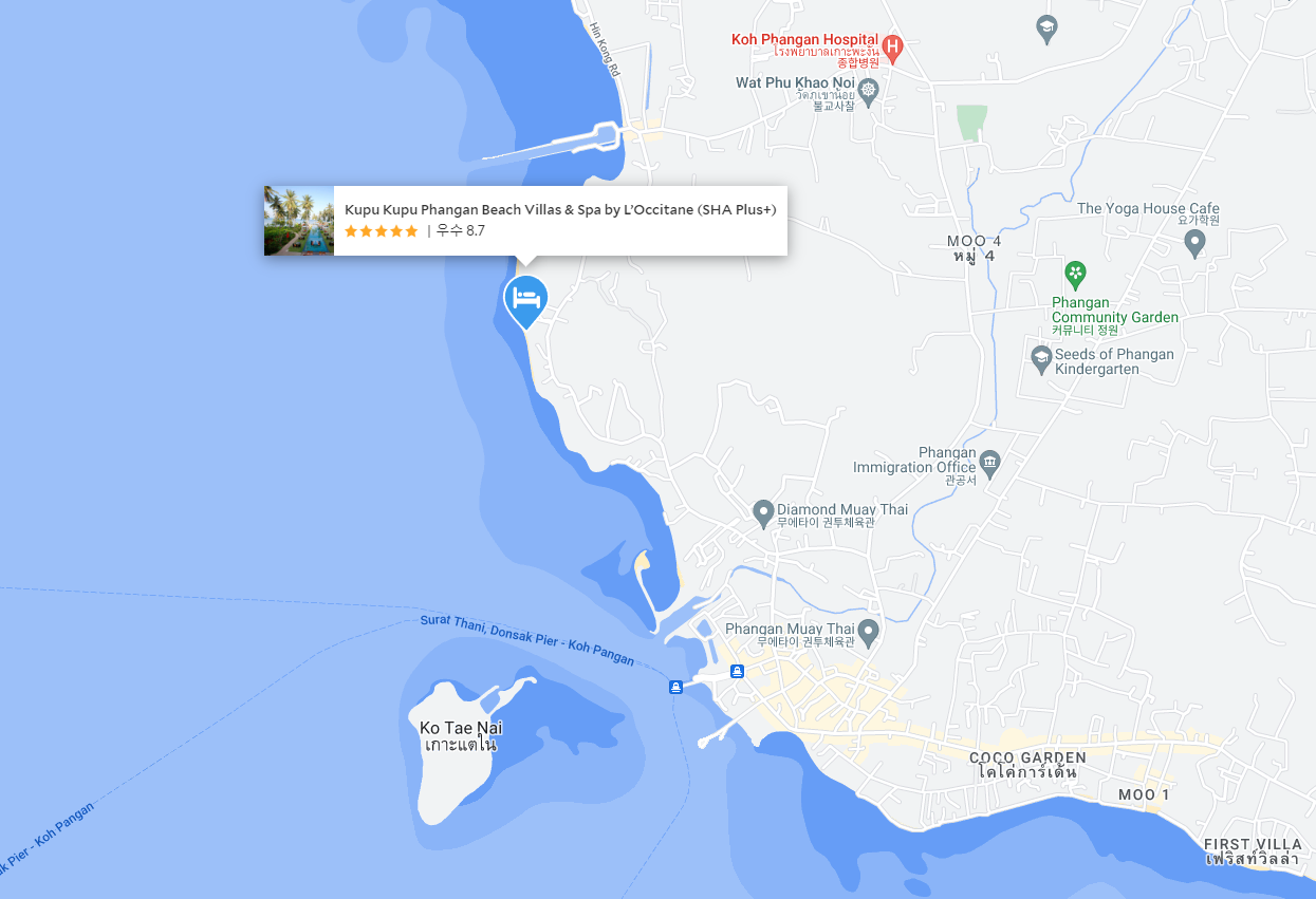 코팡안여행에 추천하는 호텔!!! 코팡안에서 가장 훌륭하고 가장 호화로운 곳 중의 한곳인 쿠푸쿠푸 팡안비치빌라앤스파 바이록시땅 (Kupu Kupu Phangan Beach Villas & Spa by L’Occitane)입니다. 직원분들은 매우 사려깊고 음식은 훌륭하지만 무엇보다 전망과 위치는 아슬아슬하고 타의 추종을 불허합니다!