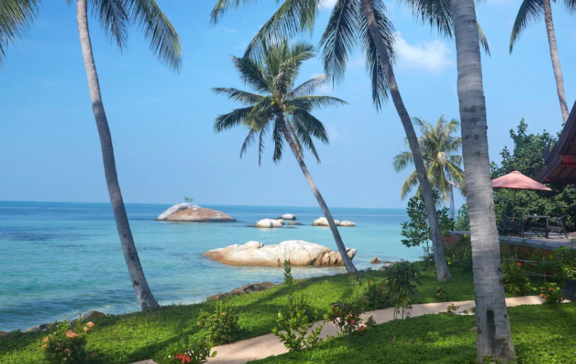 코팡안에 가장 핫한 비치로 추천하는 풀문파티가 열리는 핫린비치에 있는코팡안호텔로 추천하는 스카이문 리조트 코팡안 (Skymoon Resort Koh Phangan)은해변 끝쪽 절벽에 위치하여 아름다운 전망을