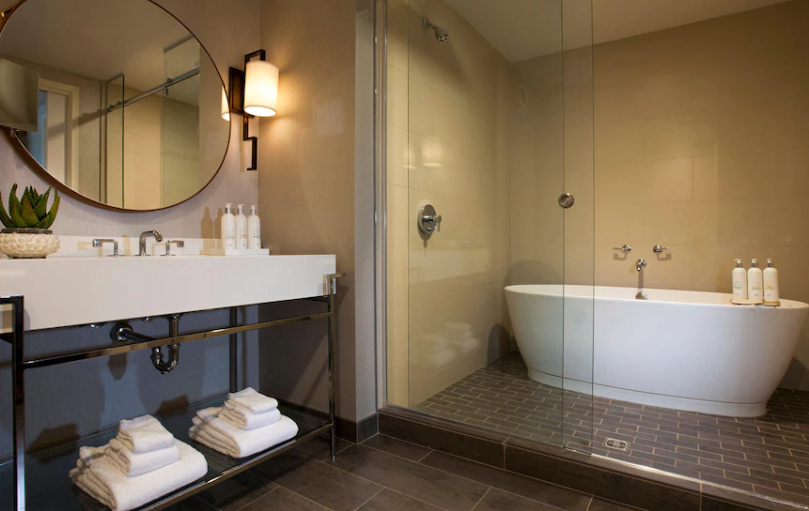 킴튼 호텔 팔로마 피닉스 시티스케이프 (Kimpton Hotel Palomar Phoenix Cityscape)의 전망은 산뷰와 경기장뷰가 있으며 객실은 깨끗하게 쾌적한 분위기입니다. 일반킹룸에는 욕조가 없었으며 스위트룸으로 업그레이드하시면 욕조를 갖춘 욕실을 즐기실 수 있습니다.