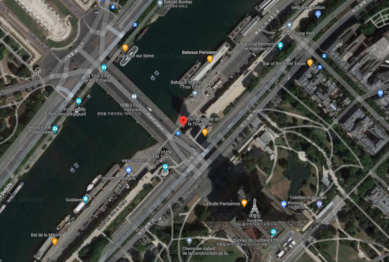 세느강 크루즈의 경우 에펠탑 근처에 있는 Bateaux Parisiens, Port de la Bourdonnais, Pontoon 03에서 만나세요.