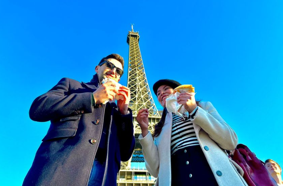 v. 에펠탑 근처에서 맛있는 프랑스식 크레이프를 맛보세요
