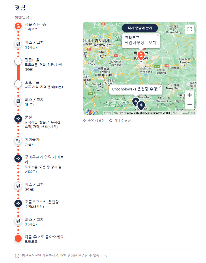 크라쿠프출발 호텔 픽업이 포함된 자코파네 및 온천 투어(Krakow Zakopane and Thermal Springs Tour with Hotel Pickup)는 GET YOUR GUIDE 사이트에서 예약하실 수 있습니다. 사이트는 특히 전세계 대부분의 나라, 지역의 투어, 교통편 있어, 쉽게 찾을 수 없는 여행지의 다양한 투어 및 서비스를 이용할 수 있는 글로벌 사이트로 한국어사이트는 지원하지 않습니다. (글로벌 한국어 여행사이트를 찾으신다면 klook 여행사이트 추천합니다. 함께 사용하시면 더욱 편하게 여행하실 수 있습니다. klook에 찾는 정보가 없다면 GET YOUR GUIDE에서 찾으시면 됩니다.)