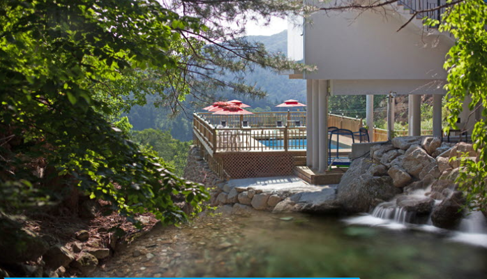 산에서 흘러내려오는 전용 계곡이 펜션