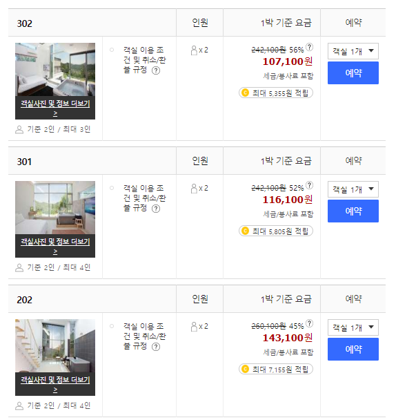 기분에 따라 취향에 따라 객실을