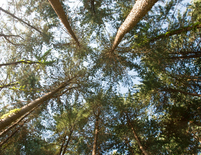우거진 잣나무에 둘러싸여