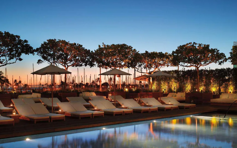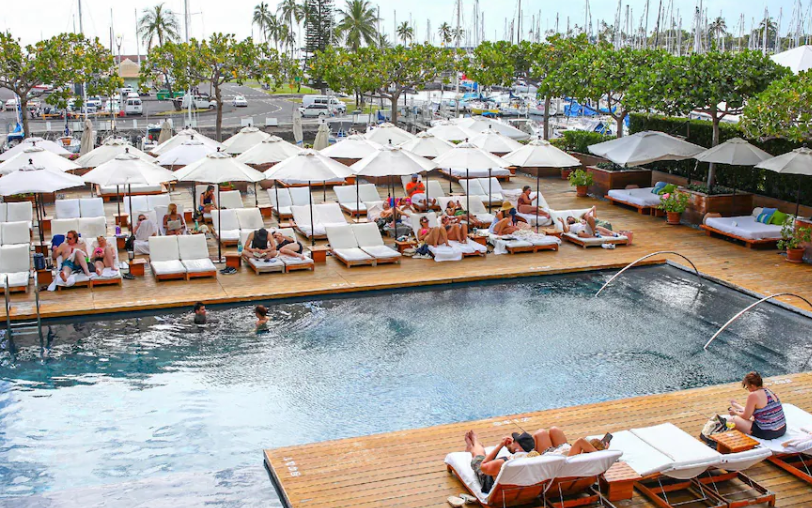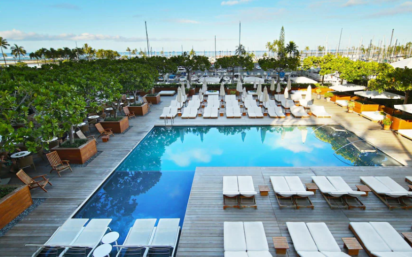 호텔 이름에 걸맞게 인테리어가 무척 모던하며 수영장은 사진보다 작은 편이지만, 전체적인 인테리어가 예뻐서 사진찍기 좋고 저녁이면, 요트선착장의 야경과 더불어, 내려다보이는 수영장도 너무 예쁘고 해변까지는 약간 걸어가야 하지만, 산책하듯 걸어가기 좋고 와이키키 해변보다 더 한산하기 때문에 좋습니다.