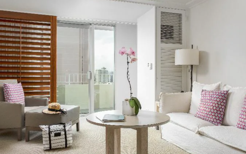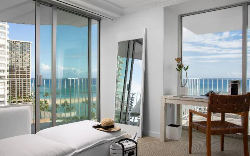 더 모던 호놀룰루 호텔의 가장 큰 매력 중 하나는 그 세련된 인테리어입니다. 객실은 미니멀리스트 디자인을 바탕으로 화이트와 뉴트럴 톤을 주로 사용하여 깔끔하면서도 고급스러운 분위기를 연출합니다. 대형 창문을 통해 들어오는 자연 채광은 공간을 더욱 환하게 만들어 주며, 일부 객실에서는 아름다운 바다 전망을 즐길 수 있습니다.
