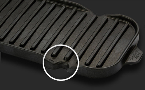 기름/지방/육류 팬에 굴곡이 있어, 고기를 더 맛있게 구워줍니다. 기름 배출구가 있어 자동 배출이 가능합니다.