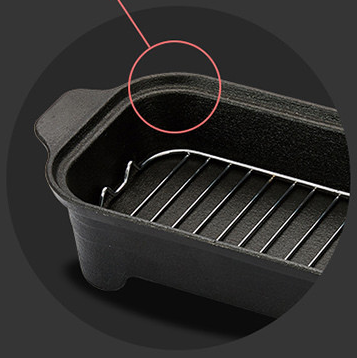 멀트레이에 경사가 있어 자동으로 기름 배출이 됩니다. 통주물 방식에 자일란 코팅으로 기름이 눌러 붙지 않습니다.