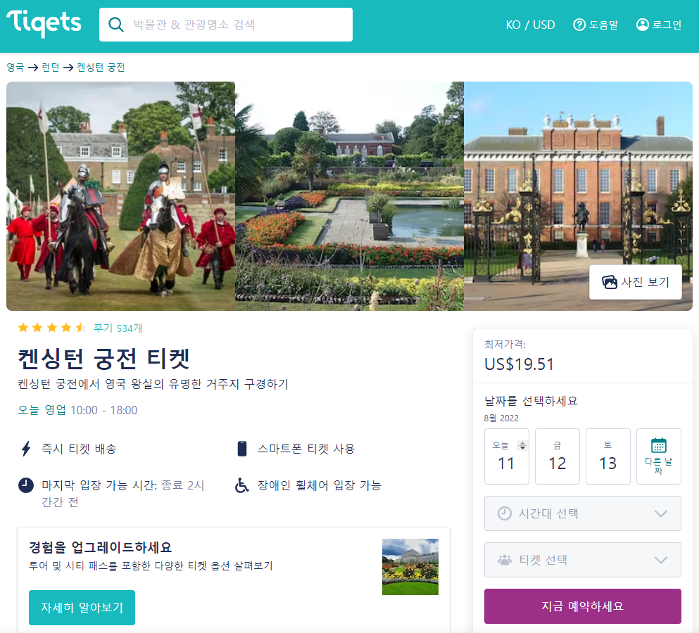 켄싱턴궁전 입장권은 tigets 온라인 사이트에서 간편하게 예약하실 수 있으며 이메일, 페이스북, 구글 아이디로 쉽게 회원가입이 가능합니다.