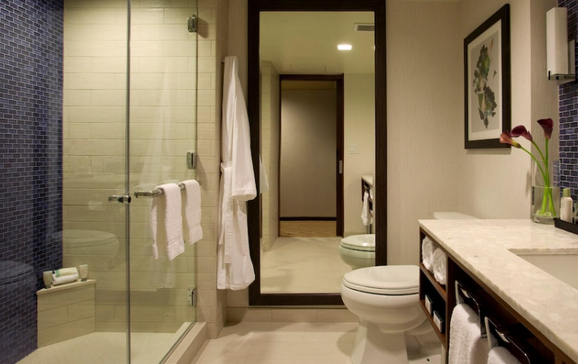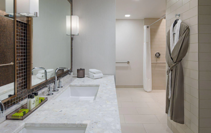 일부 객실의 욕실 내에 제공되는 세면도구, 목욕 가운 및 헤어 드라이어와 함께 상쾌하고 청결한 모습을 유지하실 수 있습니다.