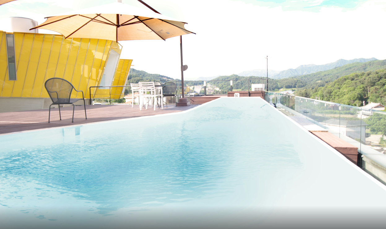 하늘색으로 물든 모아이의 수영장은 온수공급이 가능하며
