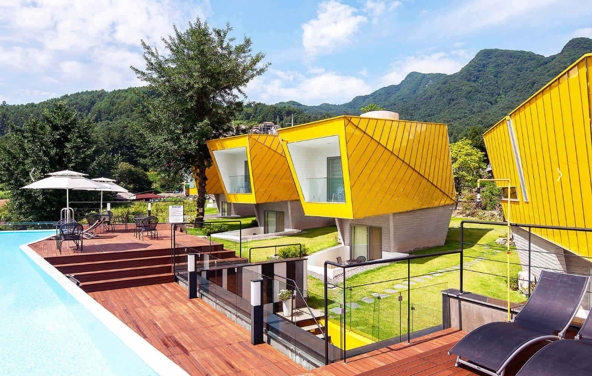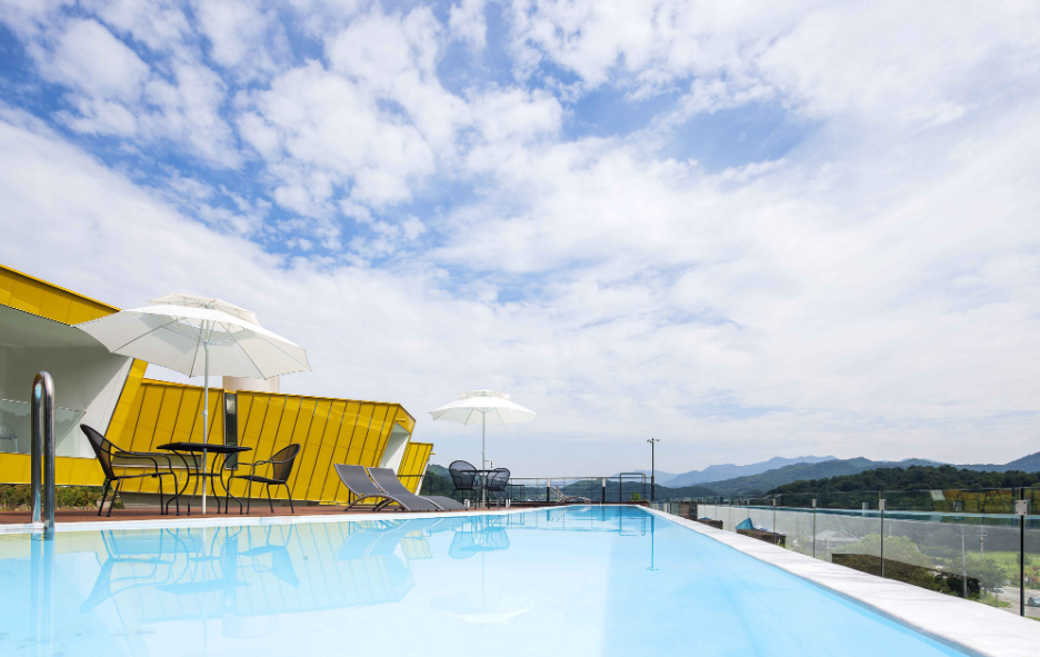 화사하고 따뜻한 모아이풀빌라스파펜션의 노란 빛깔은