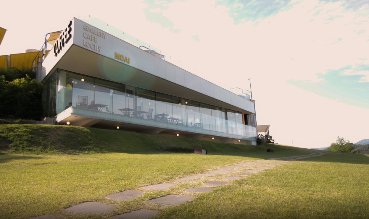 긴 수평 기단(모아이카페)을 두르고,