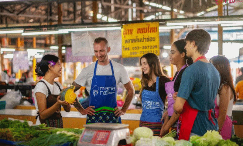 마마노이 쿠킹 클래스는 아마도 당신이 느껴볼 수 있는 가장 '태국적인' 경험 중 하나일 것입니다. 차가운 코코넛 물 한 잔을 손에 든 채, 신선한 야채와 향신료가 가득한 시장을 둘러보며, 태국 요리의 핵심 재료를 직접 고르는 과정부터 시작합니다. 마마노이 쿠킹 클래스의 친절한 지도자들은 각 재료의 중요성과 그것들이 어떻게 조화롭게 어우러져 태국 음식의 독특한 맛을 만들어내는지 상세히 설명해 줍니다.