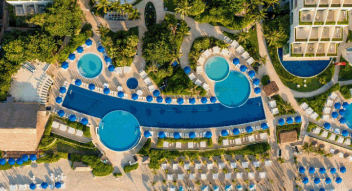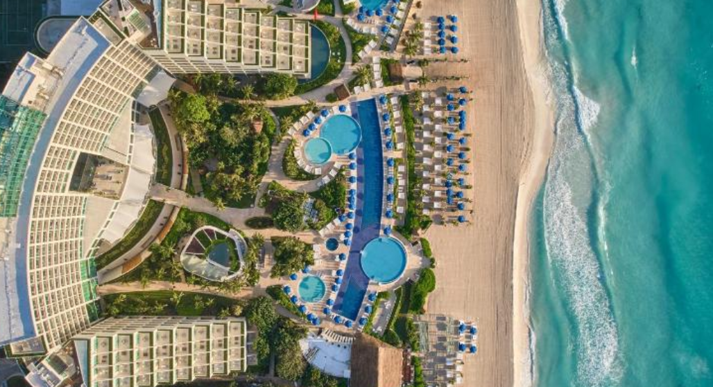리조트의 가장 큰 매력은 바로 그 위치입니다. 칸쿤의 화이트 샌드 해변에 자리한 이 리조트는 에메랄드빛 카리브해와 푸른 하늘이 어우러져 이루어낸 장관을 감상할 수 있습니다. 투숙객들은 해변에서 여유로운 시간을 보내거나, 수영장에서 휴식을 취할 수 있습니다.