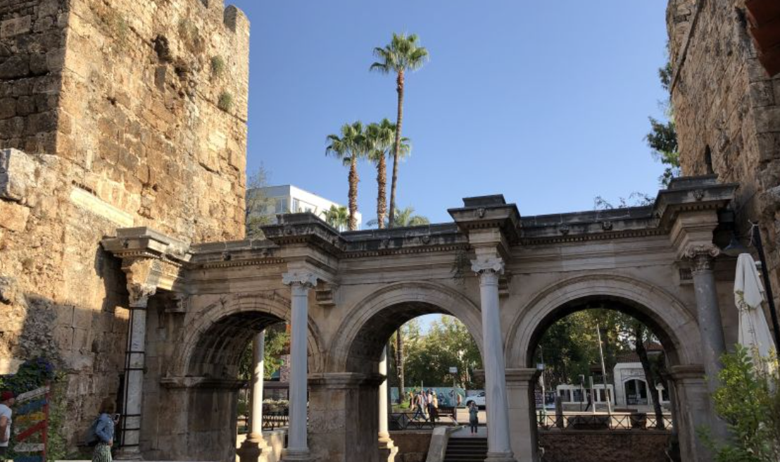하드리아누스 문: 이곳은 안탈리아 올드타운의 엔트런스로, 로마 황제 하드리아누스를 기리기 위해 세워진 고대 로마 문입니다. 이 문을 지나면 고대 성벽이 위치한 올드타운으로 들어갈 수 있습니다.