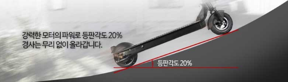 강력한 모터의 파워로 등판각도 20% 경사는 무리 없이 올라갑니다.