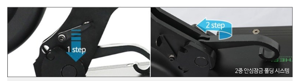 핸들바는 물론 전체적인 폴딩이 가능한 동시에 보관시에도 간편하게 보관이 가능합니다. 2중 안심잠금 폴딩 시스템으로 보다 견고하며, 안전한 주행이 가능합니다.
