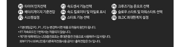 * 이제품은 전자제품이므로 비오는날 주행이나 젖은노면에서의 주행을 하지 않도록 주의하세요.