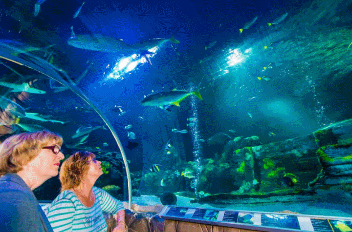 바다 터널을 걸으며 해저의 탁 트인 전망에 감탄하십시오. 형형색색의 물고기 떼를 보고 성게를 알아보세요. 터치풀에서 손을 뻗어 불가사리와 게를 만져보세요. 실험실과 보전 만에서 보전과 기후 변화에 대해 알아보세요.