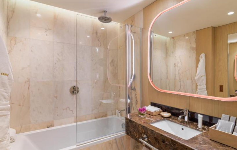 일부 객실의 욕실 내에 제공되는 세면도구, 타월, 목욕 가운 및 헤어 드라이어와 함께 상쾌하고 청결한 모습을 유지하실 수 있습니다.