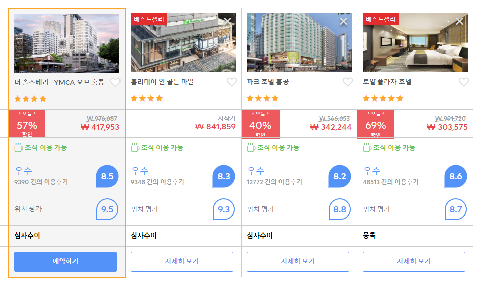 호텔 더 솔즈베리 YMCA 오브 홍콩 (The Salisbury YMCA of Hong Kong)의 최저 가격대는 아고다웹사이트에서 할인특가 가격으로 매일매일 변동되며 10만원대부터 다양하게 형성됩니다. 날짜별로 매일 가격이 다르므로 아고다웹사이트 최저가를 확인하시려면 아래 링크를 누르시고 원하는 날짜의 가격대를 선택해야 정확한 가격을 자세히 보실 수 있습니다.
